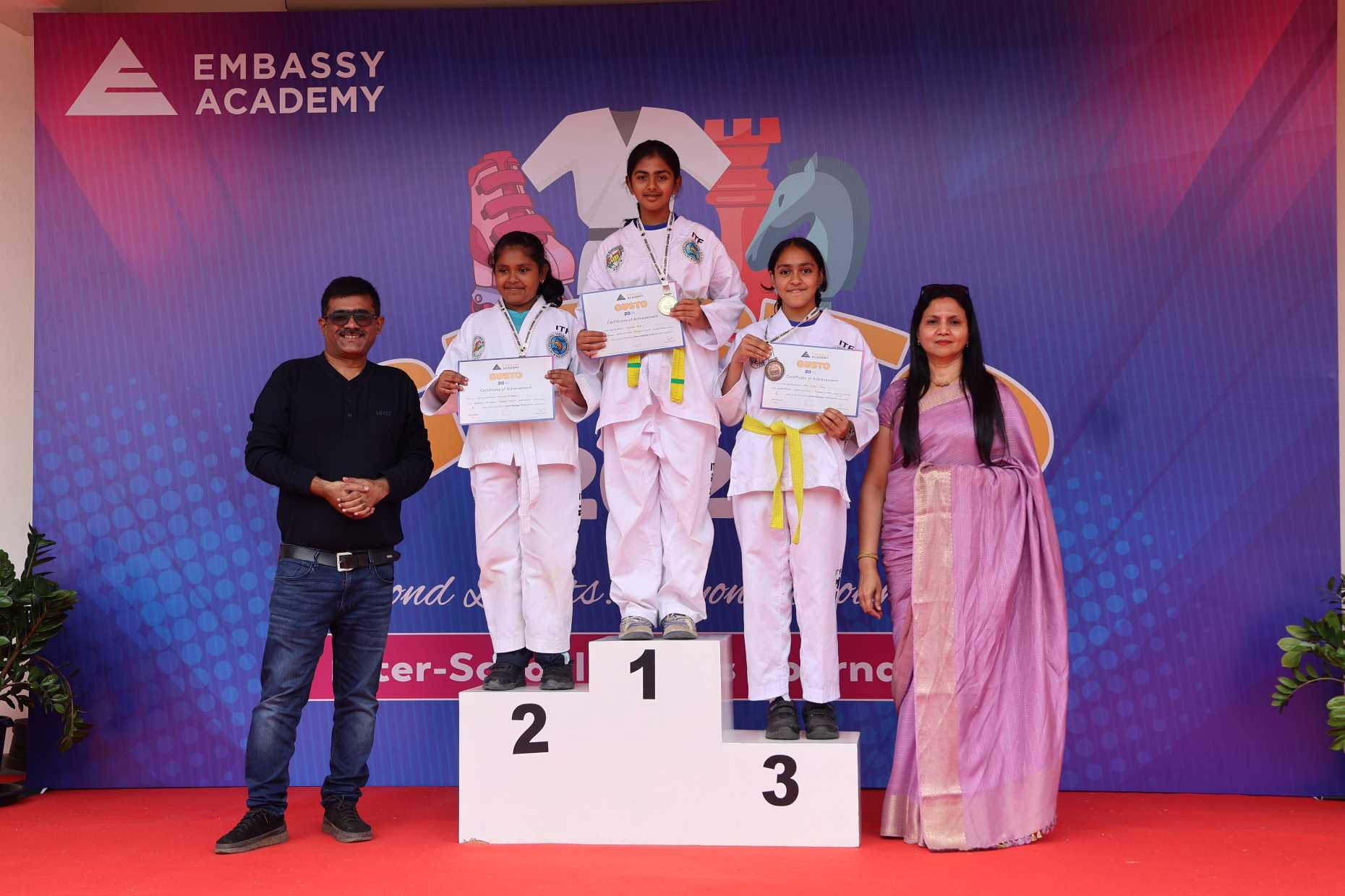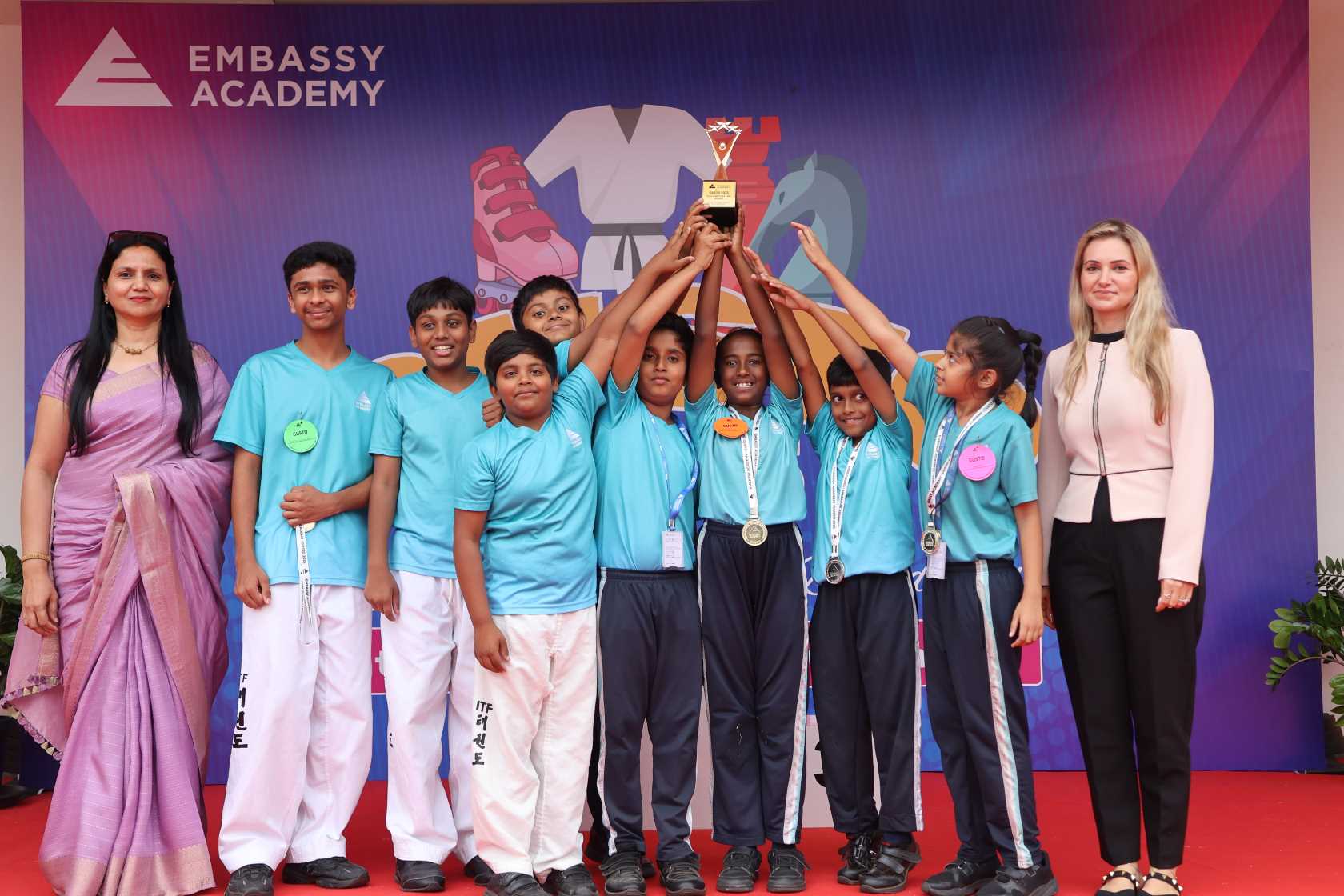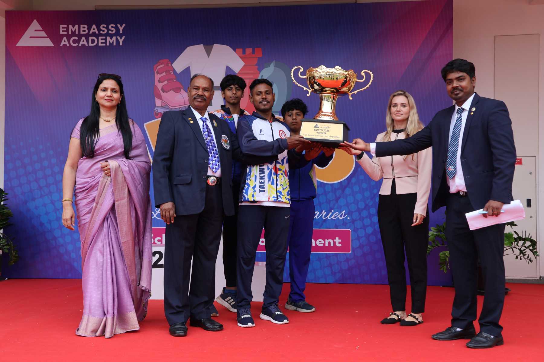 Over 65 schools and 500+ participants brought their best to Chess, Skating, and Taekwondo, demonstrating remarkable focus, skill, and sportsmanship. From cheering peers to motivating performances, the campus buzzed with energy as teachers and parents joined in celebrating every achievement. GUSTO 2025 highlighted teamwork, discipline, and determination – qualities that define Embassy Academy, the premier CBSE school nurturing confident and well-rounded learners.