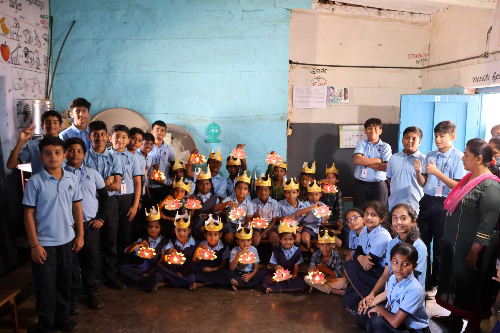 The celebration kicked off with a lively collaborative art session, where students from both schools crafted colorful crowns and paper lanterns together. Giggles, teamwork, and bursts of imagination filled the air, breaking barriers, and fostering new friendships. Adding a sweet touch to the day, the students shared sweets, spreading happiness, and creating memories that will linger long after the visit.